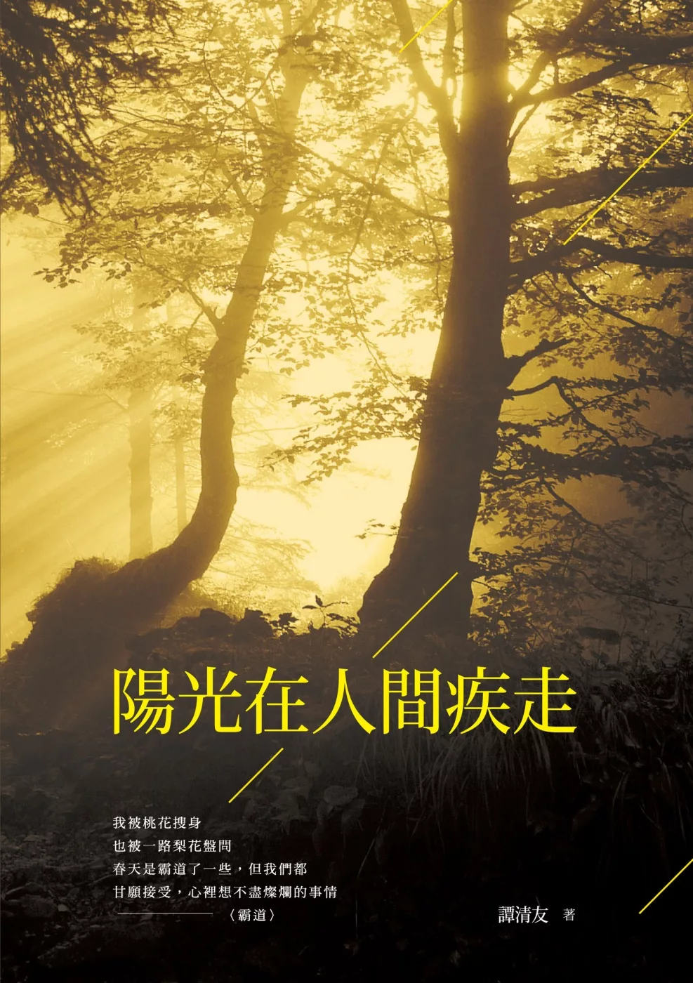 本詩集分成【不願走失的時光】、【月光漫過木柵欄】兩個部分,分別以每首四行和三行的詩句為創作形式,題材內容廣泛,以四百餘首精簡詩句,表述詩人對時光的緬懷,對生活的感恩,更從凝鍊的語言中看見詩人的生活哲學:陽光在人間疾走,但歲月帶給我們智慧。