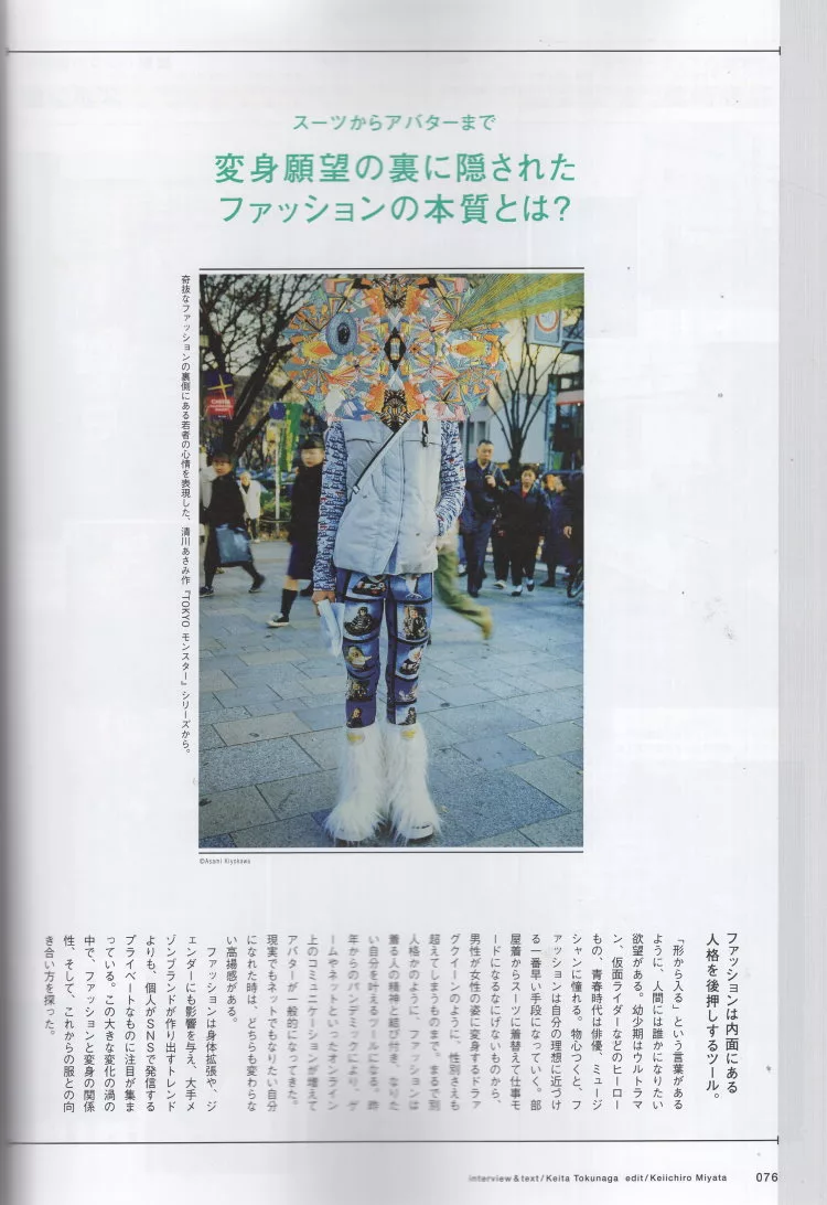 就像「先從形式開始」這句話,人都有變身成什麼人的慾望。像是小時候崇拜的特攝英雄、青春期喜愛的明星,一旦心生憧憬,就不自覺想要打扮得和他們一樣。這是否就是時尚的本質呢?